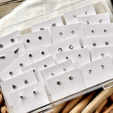 These cute simple stud earrings are average-sized, perfect for wearing singularly or stacked along multiple hole ears.