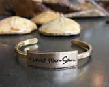 Whether from the past or present, keep them close with our thin gold cuff bracelet with engraved handwriting.