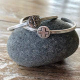 We have two great options for our Sterling Silver Cross Cuff Bracelets, one features the traditional cross and the other a Swiss cross that has been sweeping current trends. The Swiss cross is also known as the medic cross which would make this thin cuff bracelet a perfect gift for anyone in the medical field.