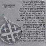The Jerusalem Cross, also known as the Crusader’s Cross, the five-fold cross and the “cross-and-crosslets” is an elaborate variant of the Christian cross. It’s one of the most well-known Christian symbols. It was used as the emblem and coat of arms of the Kingdom of Jerusalem fell the 1280’s. In its totality, the Jerusalem Cross is a symbol of Jerusalem and Jesus Christ, which are the roots of Christianity.