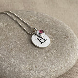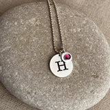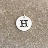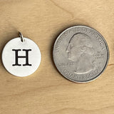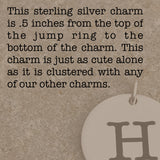 This sterling silver initial disc charm is .75 inches from the top of the jump ring to the bottom of the charm. This small silver initial charm is just as cute alone as it is clustered with any of our other charms.