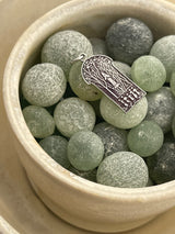 This is a charm depicting followers praying to Mother Mary. I do not know much about the meaning behind this charm. I had picked it up in France at a flea market years ago. We cast these from the original in our studio.