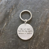 These personalized message keychains can be engraved with handwritten text, hand-drawn pictures, or both. These personalized message keychains can be engraved with handwritten text, hand-drawn pictures, or both.