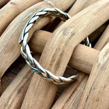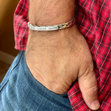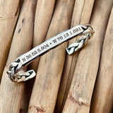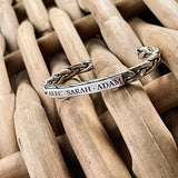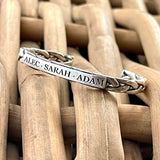 This is our first sterling silver woven cuff bracelet that can be customized with handwriting, dates, names, or quotes. The possibilities are endless. The custom silver cuff bracelet fits up to 8.5” wrists and can be bent to the desired fit. Please watch our video on YOUTUBE showing how to take off/put on our woven cuff.