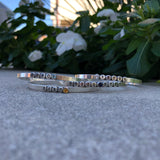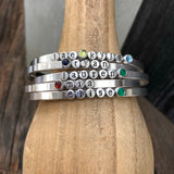 These cuffs have become my new favorite everyday accessory along with my handwritten thin cuffs and beaded cuff. You get to use to your creativity and design your own sterling silver cuff bracelet! Dates, names, initials or gemstones, it’s up to you! You have up to ten droplets on each cuff to work with.