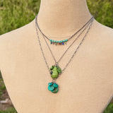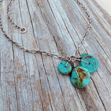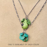 Choose between beautiful green raw turquoise or a classic aqua blue! These necklaces are a perfect for anytime of the year! Sterling silver.