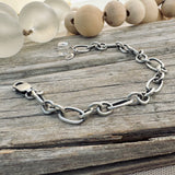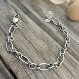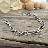 Perfect for layering or by itself! The sterling bracelet is adjustable from 6” to 7.5”. If you’d like a different length, please email us at info@heidijhale.com. The size of the largest oval link is .25” x .5” to give you an idea of the size.