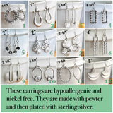Statement earrings that are light and fun! Cast in pewter and then layered with sterling silver. They are lightweight and hypoallergenic.