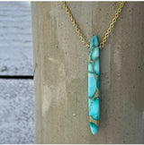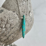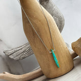This blue ocean-sediment Jasper pendant works perfectly as a day or evening necklace, making any outfit pop. The blue Jasper pendant measures approximately one inch long. You may choose the length of the necklace from 16”-18” or 18”-20