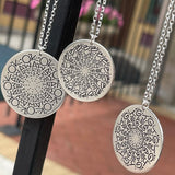 Please be aware that each personalized two-name mandala necklace is drawn by hand. If our artists are not able to work with the provided name, we will contact you to discuss this further.