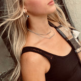 We have two dotted bar necklace options. The shorter one is 1.5 inches and the longer is 2 inches. These are perfect worn together or layered with other necklaces.