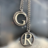 This is one of our most labor intensive necklaces we make, from the hand sawn initial to the tedious wire wrapping around the circular frame. This isn’t only an accessory but a unique work of art that is a labor of love. Attention to detail within our sterling silver Intricate Initial Necklace is extraordinary.