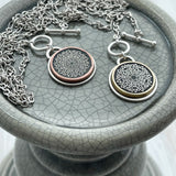Not only our newest Namedala design but our favorite! The design rises above the black background! This personalized pendant necklace is a different take on one of our most popular designs. Much smaller, the pendant is one inch and that includes the frame (bezel). Your name creates a unique mandala and though the letters are visible, they are not as visible as our classic Namedala.