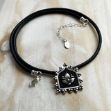 Our sterling silver lotus flower necklace is handmade, size is approximately 7/8”x1”. The necklace is made of 3mm leather with sterling silver lobster clasp and 2 inch extender so that you can wear the necklace from 16 inches up to 18 inches.