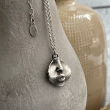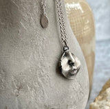 Wearable art is the first thing that comes to mind when you see this necklace, but the meaning behind it is much more personal. When I was five, my dad was stationed in Alaska. He would send letters and my favorite part was him writing S.W.A.K. on the back of the envelope. Make our sterling silver kiss mouth pendant necklace a reminder of the sweet memories of loved ones. Hand-cast in our studio in sterling silver. The pendant itself is approximately 3/4 inch.