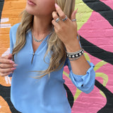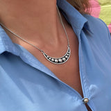 Our Sterling Silver Beaded Cuffs are one of our most popular designs so we decided to create a matching sterling silver beaded crescent necklace! This is a go-to necklace that can be worn anywhere anytime whether it’s a night on the town or brunch with the gals.
