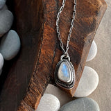 Sterling Silver Faceted Rainbow Moonstone Necklace