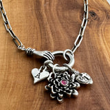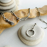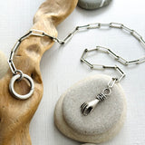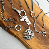 We cast an original antique Victorian Watch Fob to create a unique charm chain. The circular clasp is a push clasp that attaches the two ends of the chain and any charms you want to add. Each component is sterling silver. If the length you want is not listed, please email us at info@heidijhale.com.