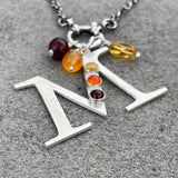 Make sure to browse our chains/charms section to add to your masterpiece! You can combine these sterling silver initial charms with our wire-wrapped gemstones to create an awesome cluster on a necklace.