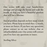 Our artists will take your handwritten message and arrange the layout and scale the words, so that you have a beautiful pendant that will last a lifetime.