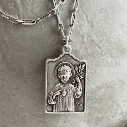 Sterling Silver French Religious Medallion Necklace - Little Jesus
