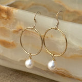 Gold-filled Hoop Pearl Earrings 1 5/8”