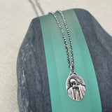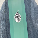 Our Lady of Pontmain, also known as Our Lady of Hope, is the title given to the Virgin Mary on her apparition at Pontmain, France on January 17, 1871. This pendant features a statue in honor of her apparition in front of a large crowd. The children in the crowd were the only ones to see the Virgin Mary. While everyone else saw three stars forming a triangle, the apparition left a message for the children, “But pray, my children. God will hear you in time. My Son allows Himself to be touched.”