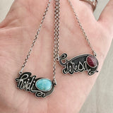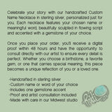 Celebrate your story with our handcrafted Custom Name Necklace in sterling silver, personalized just for you. Each necklace features your chosen name or meaningful word, beautifully sculpted in flowing script and accented with a gemstone of your choice.