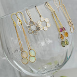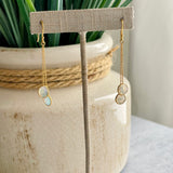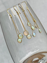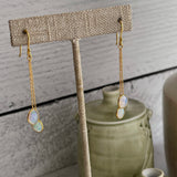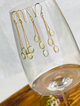 Delicate and beautiful earrings! The opals are rose-cut meaning they are faceted on top and flat on the bottom. These opals take on hues depending on the light! They are 2 3/8” long.