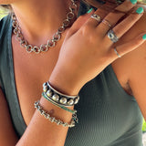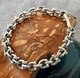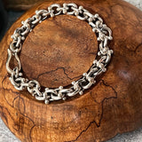 An everyday chunky sterling silver link bracelet with a clasp. It's fun to stack or wear as a statement piece! The entire bracelet is made by hand and fits wrists up to 7.5 inches. The closure is an eye and hook clasp. The bracelet is sterling silver .925.