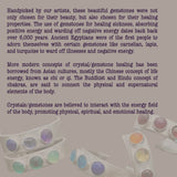 Handpicked by our artists, these beautiful gemstones were not only chosen for their beauty but also chosen for their healing properties. The use of gemstones for healing sickness, absorbing positive energy, and warding off negative energy dates back over 6,000 years. Ancient Egyptians were the first to adorn themselves with certain gemstones like carnelian, lapis, and turquoise to ward off illnesses and negative energy.