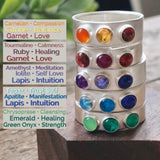 Crystals and gemstones are believed to positively impact the energy field of the body. So, we created these adjustable sterling silver rings to promote physical, spiritual, and emotional healing. The stones are 4mm each and set in sterling silver with an adjustable silver band.
