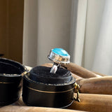 Cushion-cut faceted aqua-green chalcedony ring with hand forged real sterling silver.