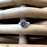 This signet seal ring is adorable, we are obsessed! It’s created by using an antique French wax seal. We’ve made sure to not lose the details that you would see in wax. The signet wax seal ring is made from sterling silver and the seal measures approximately 1/2 inch.
