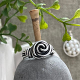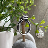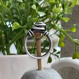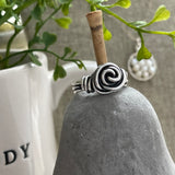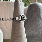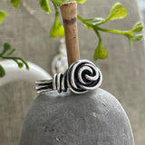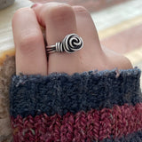 This sterling silver wire-wrapped ring in the shape of a rosette is an old classic I would make when I first started making jewelry twenty-five years ago. This rosette ring is nice and thick, available in sizes 5 through 12.