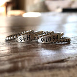 Annivers-a-ring can be used to celebrate with two initials and a date. The sterling silver stacking ring design really creates a stylish look. Comes with 3 beaded spacer rings! Made from fine and sterling silver. Nickel free. 1 set of initials and one date only.