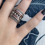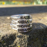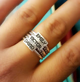The Original Say It On A Ring® is a part of our Say It Collection. It can be used in so many ways; to love, celebrate, honor, laugh, inspire...the possibilities are endless! We have customers that have created personalized stacking rings with names of children, sweethearts, sayings, significant dates, initials, and even inside jokes. The stacking ring design really creates a stylish look and it also gives you the flexibility to add more rings if you would like. What would you want your rings to say?