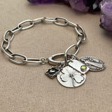 This is the ultimate everyday chain-link charm bracelet. The chain is hollow so it’s very comfortable to wear by itself or stacked with other bracelets. This beauty is adjustable, and the clasp is very easy to use (great for those with arthritis in their hands). Lastly, it’s perfect to wear your favorite charms!