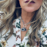 To create your sterling silver birth flower necklace you may choose just the charms and add them to your own chain or purchase one of our unique sterling silver charm holders. These birth flower charms range between .75” inches and 1.25” and are sterling silver.