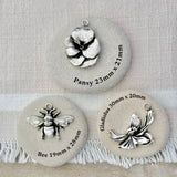 To create your sterling silver birth flower necklace you may choose just the charms and add them to your own chain or purchase one of our unique sterling silver charm holders. These birth flower charms range between .75” inches and 1.25” and are sterling silver.