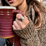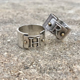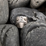 Our sterling silver letter ring is an everyday piece that is a must-have! This thick silver band ring is accented with gold-filled balls on each side of the letter. This allows the sterling silver initial ring to be paired with your gold or silver accessories.