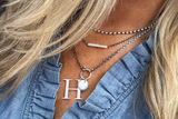 A great gift for someone you love or for yourself! This sterling silver large initial necklace with charms is a great gift for mom or yourself! This necklace can be worn in multiple ways. You can remove a charm, add charms or wear the sterling silver chain by itself. The possibilities are endless within one necklace.