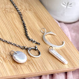 Sterling Silver Initial Letter Necklace with Freshwater Pearl Coin & Stick Charms