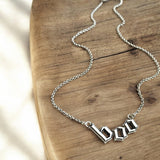 A fun necklace to celebrate Halloween in style! The sterling silver gothic style letters are cast in our studio. The lengths available are 16”, 18”, and 20”.