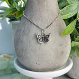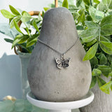 A whimsical addition to any collection, this Butterfly Necklace is sterling silver and measures 7/8” wide.
