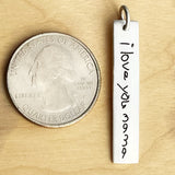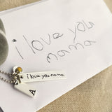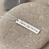 A simple charm with a message from someone who is close to our heart. Use your loved one’s own script to not only create a piece of memorial signature/handwriting jewelry you’ll treasure forever, but also a necklace that will become a family heirloom. The pendant is sterling silver and measures 1.5”x .25”.