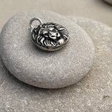 This is a quaint sterling silver lion head charm pendant. It measures around 3/4” in diameter (including the bale).