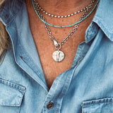 I recently combined my two favorite necklaces. I wear it daily and always get compliments. I decided this beauty needed to be on the website. It’s sterling silver and comes in various lengths. The Face Charms are not removable.