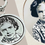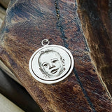 All our custom photo charms are deeply engraved, not printed. This photo charm pendant has the depth and feel of a quarter, dime, nickel, or penny with the engraving. All our custom picture pendant designs are sterling silver and of the highest quality.